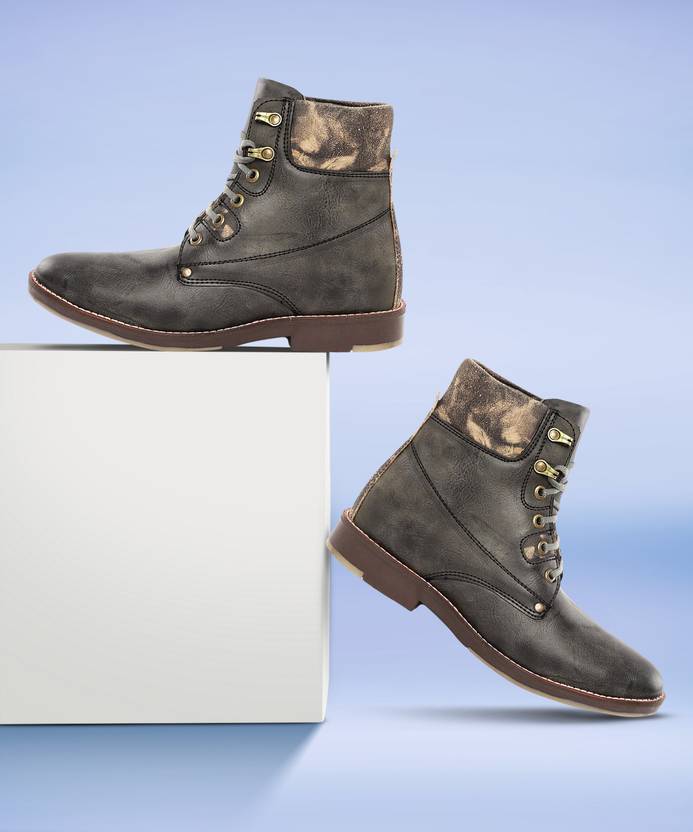 A pair of round-toe charcoal grey flat boots, has mid-top styling, lace-up detailSynthetic upperCushioned footbedTextured and patterned outsoleWarranty: 1 monthWarranty provided by brand/manufacturer. Take on a whole new style with these one-of-a-kind Roadster casual shoes. Great for a lunch date, team this pair with distressed jeans and a simple tee.