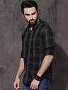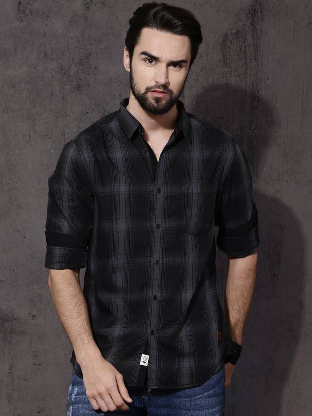 Black and grey checked casual shirt, has a spread collar, a full button placket, long sleeves with roll-up tab features, a patch pocket, curved hem. You'll love the design of this high-fashion shirt. Rock this black shirt with dark jeans and comfortable shoes next time you're looking for a casual weekend outfit.