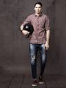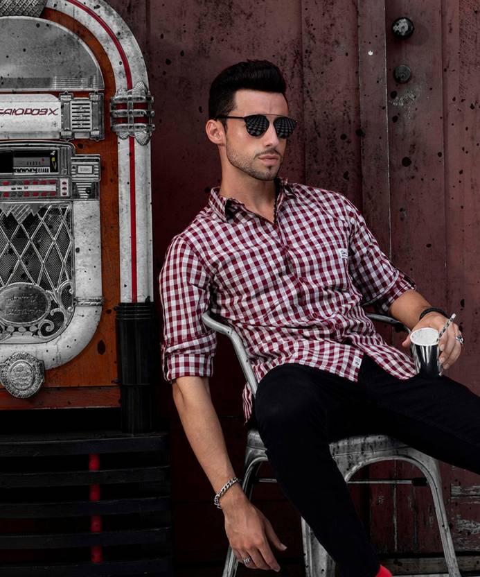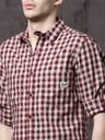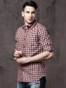 Roadster Men Checkered Casual Maroon, Grey Shirt