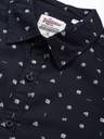 Navy blue and white printed casual shirt, has a spread collar, long sleeves, button placket, curved hem, and 1 patch pocket. Keep warm on the coldest of days with this top-of-the-line shirt. Head to a casual outdoor event with family and friends in this navy blue shirt with distressed jeans and canvas sneakers.