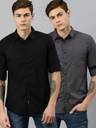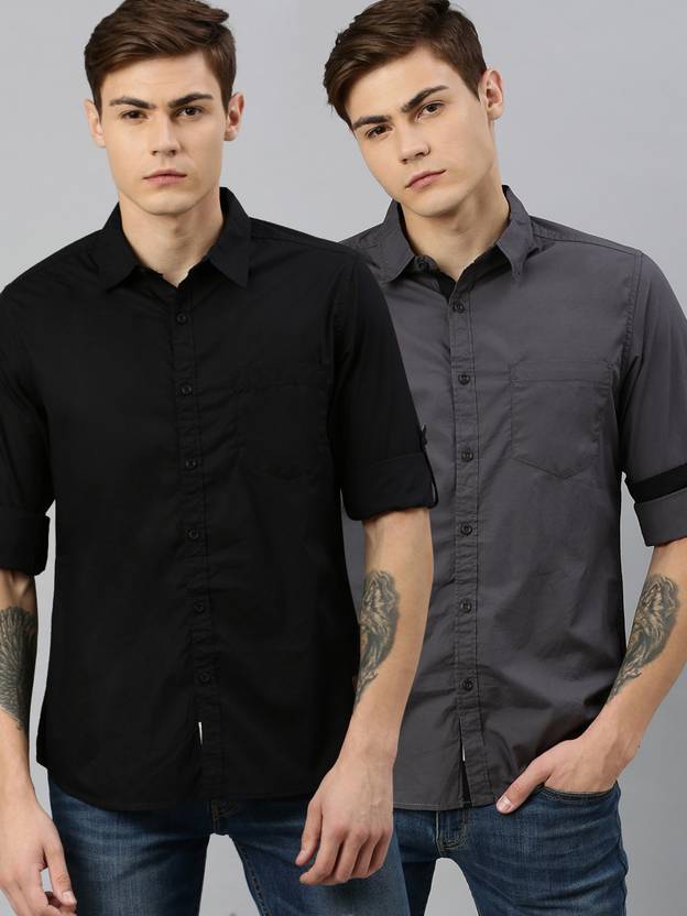 Black and Grey solid casual Pack of Two shirts, has a spread collar, long sleeves, button placket, curved hem, and 1 patch pocket. Cozy up with this in-style shirt this season. This black piece can be teamed with distressed denims and canvas shoes when youre grabbing lunch with the guys.
