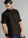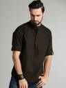 Coffee brown solid casual shirt, has a mandarin collar, button placket, long sleeves, curved hem Cozy up with this in-style Roadster shirt this season. Happy hour just got a whole lot stylish when you put this coffee brown piece with some chukka boots and leather bracelet.