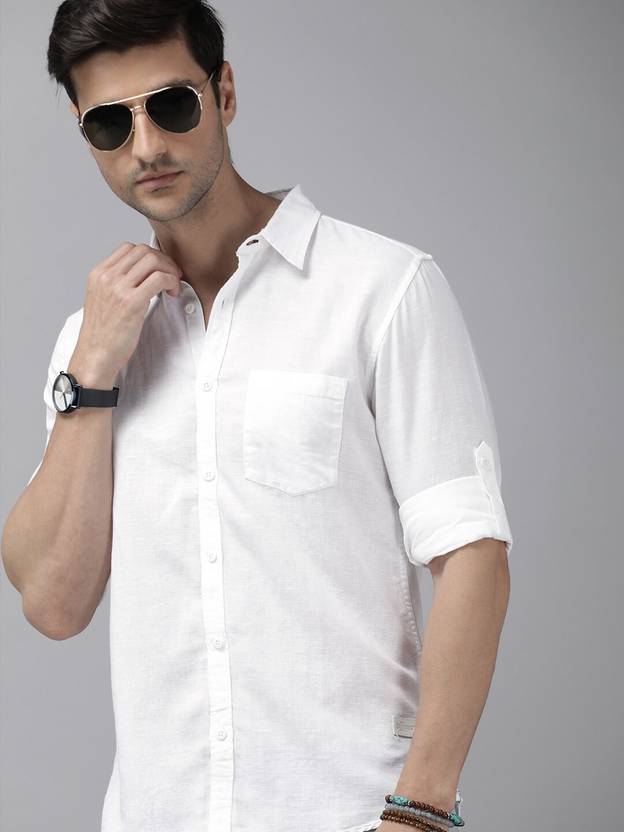 Roadster Men Solid Casual White Shirt