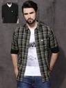 Black and khaki checked reversible casual shirtBlack and khaki checked casual shirt, has a spread collar, snap button placket, 1 pocket, long sleeves, curved hemBlack casual shirt, has a spread collar, snap button placket, 1 pocket, long sleeves, curved hemThis checked shirt from Roadster will make you look your casual best. This black shirt pairs well with your favourite blazer and slim black jeans for a breezy weekend hangout with friends.