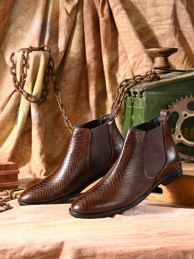 Roadster Premium Brown Crocodile Texture Chelsea Boots for Men | Trendy & Versatile Boots For Men (Brown , 8)