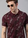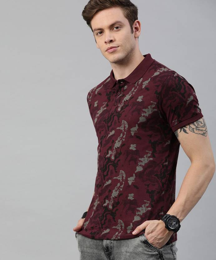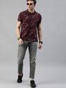 Roadster Printed Men Polo Neck Maroon T-Shirt