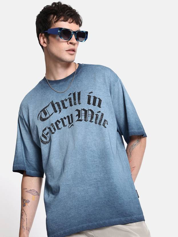 Roadster Printed Men Round Neck Blue T-Shirt