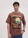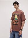 Roadster Printed Men Round Neck Brown T-Shirt