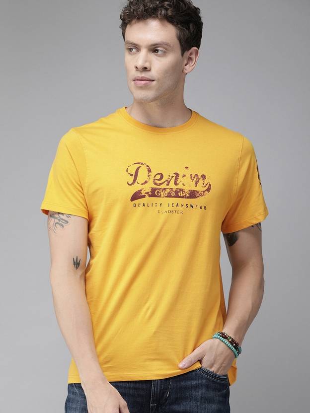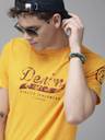 Roadster Printed Men Round Neck Yellow T-Shirt