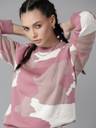 Roadster Printed Round Neck Casual Women Pink Sweater