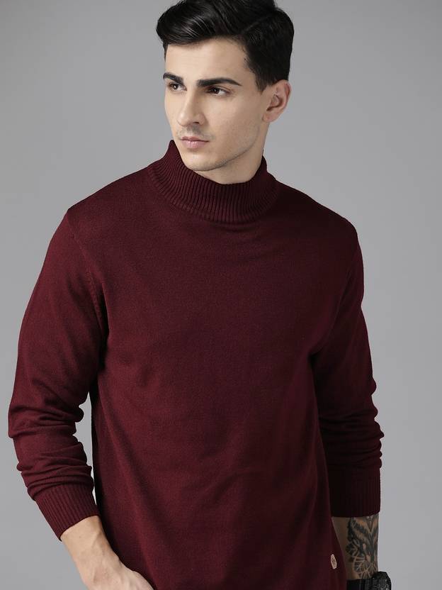 Roadster Printed Turtle Neck Casual Men Maroon Sweater