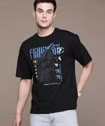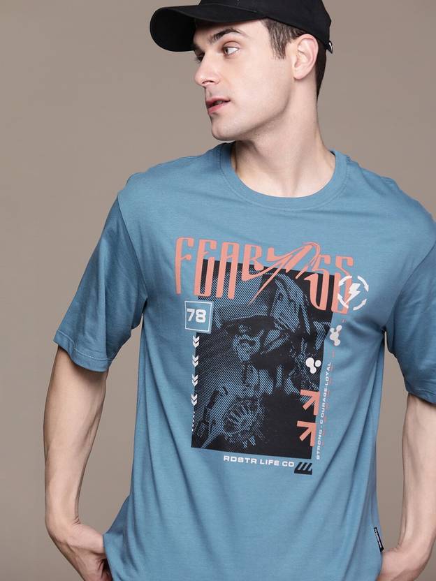 Roadster Printed, Typography Men Round Neck Blue T-Shirt