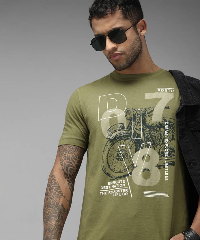 Roadster Printed, Typography Men Round Neck Green T-Shirt