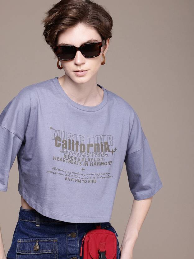 Roadster Printed Women Round Neck Purple T-Shirt