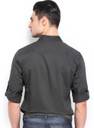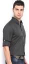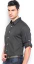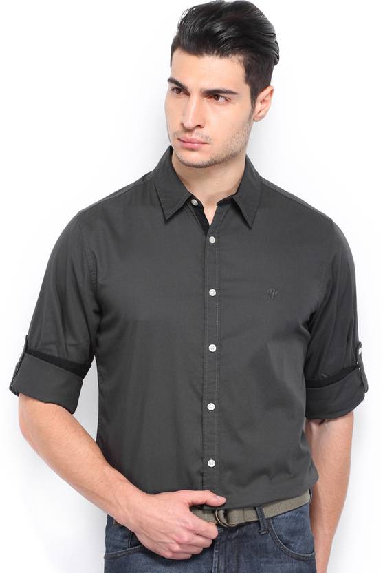 Charcoal grey woven casual shirt, has a spread collar, a full button placket on the front, long sleeves with contrast-lined button cuffs and roll-up tab features, embroidered branding on the left side of the chest, yoke on the back, a contrast overlay on either side of the curved hemline. Myntra's in-house brand Roadster brings to you a collection of stylish, well-crafted casual shirts. We recommend you to team this shirt with a pair of lightly washed jeans or chinos and casual shoes to make a sharp impression..
