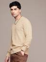 Roadster Self Design Crew Neck Casual Men Beige Sweater