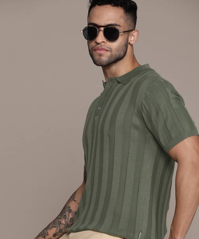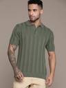Roadster Self Design Men Polo Neck Green T-Shirt