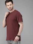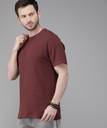 Roadster Men Self Design Round Neck Pure Cotton Maroon T-Shirt