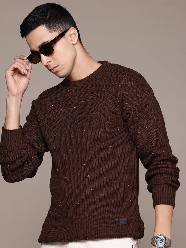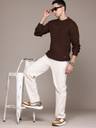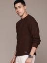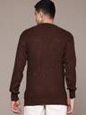 Roadster Self Design Round Neck Casual Men Brown Sweater