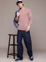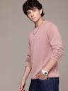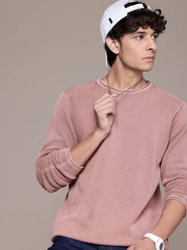 Roadster Self Design Round Neck Casual Men Pink Sweater