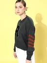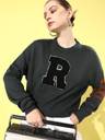 Roadster Self Design Round Neck Casual Women Grey Sweater