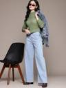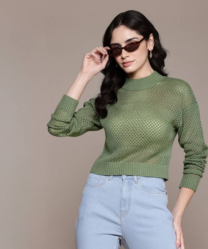 Roadster Self Design Turtle Neck Casual Women Green Sweater