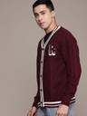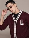 Roadster Self Design V Neck Casual Men Brown Sweater