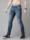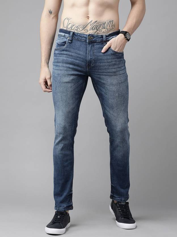 Step up your style game with these men's blue jeans from Roadster. Designed with a skinny fit and a comfortable mid-rise, these jeans feature a subtle light fade and a clean look, perfect for any casual occasion. The stretchable cotton blend fabric ensures all-day comfort and flexibility. Complete with a classic 5-pocket design and a button-and-zip closure, these regular-length jeans are a must-have for your wardrobe.