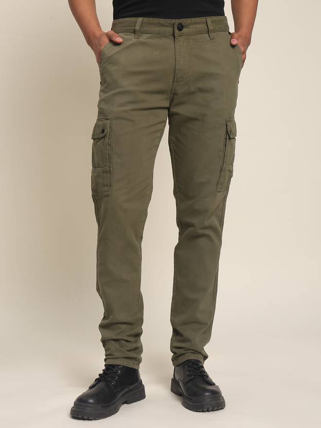 .Fit: Slim fit. Occasion: Casual wear. Color: Olive Pack of: 1 trousers Type: Trousers Suitable For: Western wear. Pattern: Solid. Fabric: Cotton. Net Quantity: 1 piece.