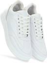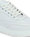 A pair of solid round toe sneakers with regular styling has a lace-up closure,PU upper,Cushioned footbed,Memory Foam Insole,Textured and patterned outsole