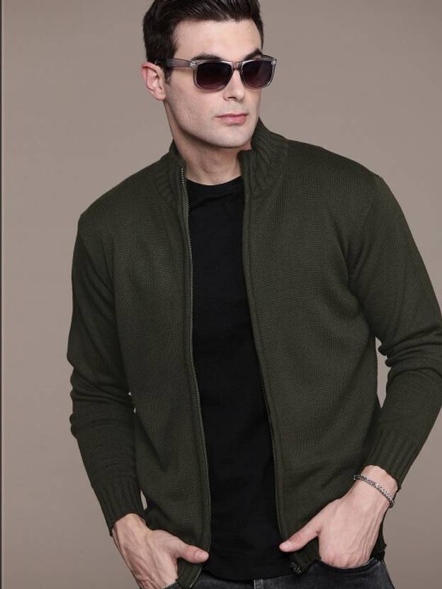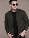 Roadster Solid Collared Neck Casual Men Green Sweater