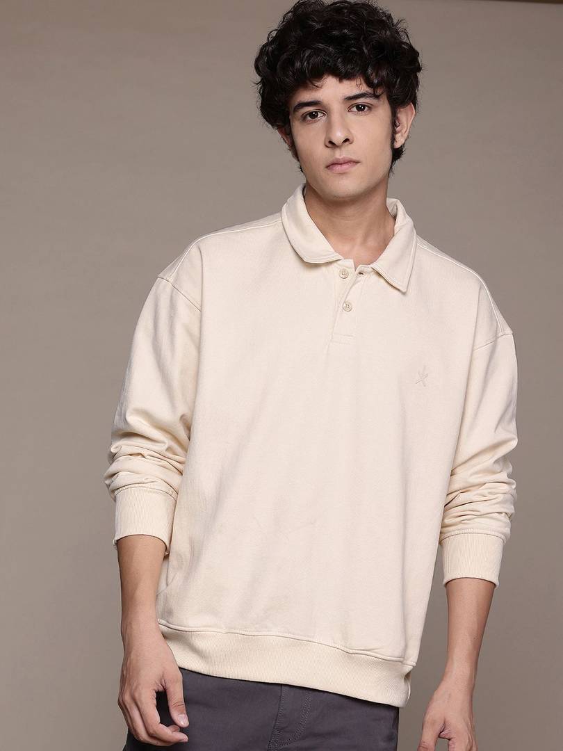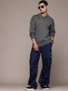 Roadster Solid Collared Neck Casual Men Grey Sweater