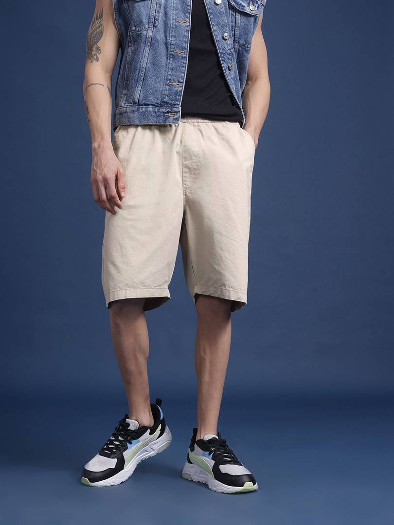 Solid Men Beige Regular Shorts