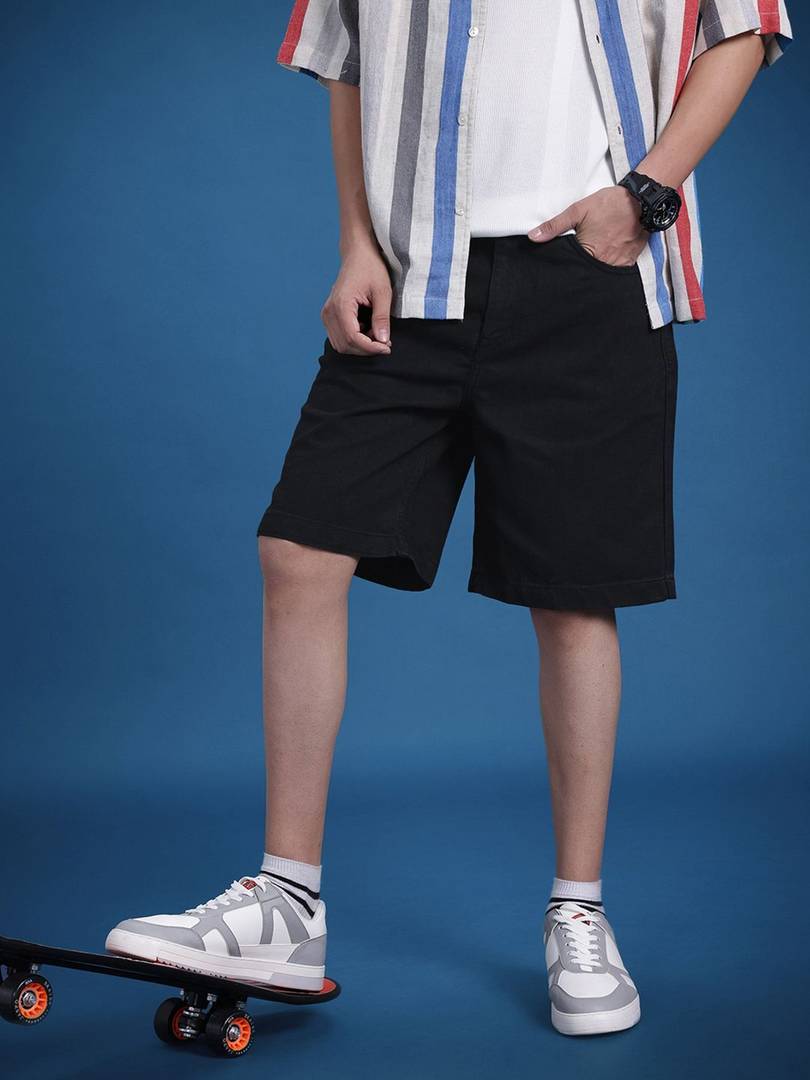 Roadster Solid Men Black High Waist Shorts