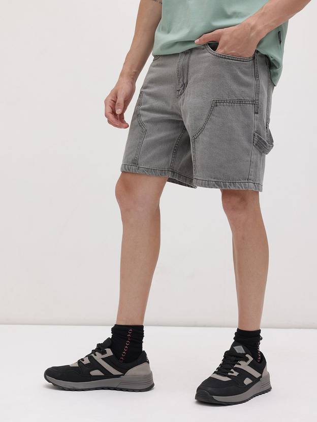 Solid Men Grey Denim Shorts