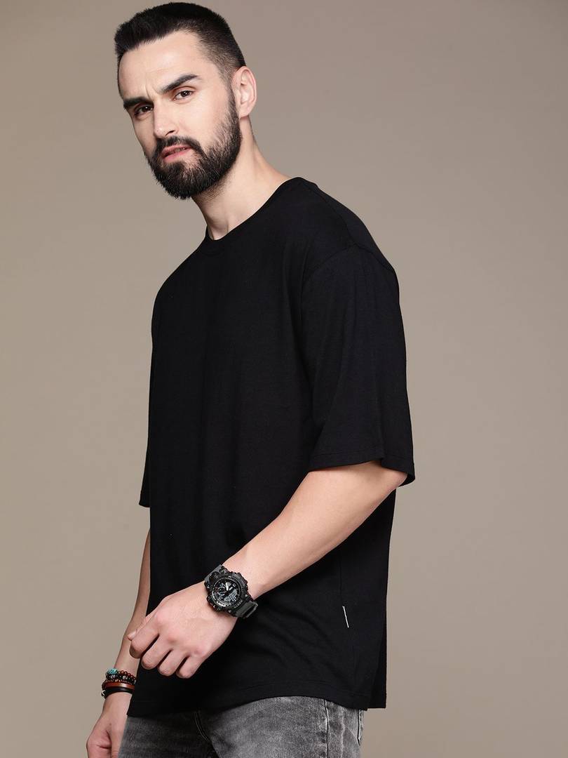 Men Solid Round Neck Cotton Blend Black T-Shirt