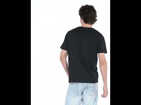 R.Code by The Roadster Life Co. Men Solid Round Neck Cotton Blend Black T-Shirt