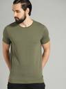 Men Solid Round Neck Pure Cotton Green T-Shirt