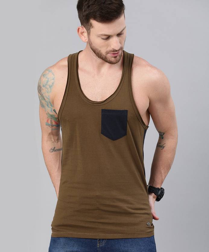 Roadster Solid Men Scoop Neck Brown T-Shirt