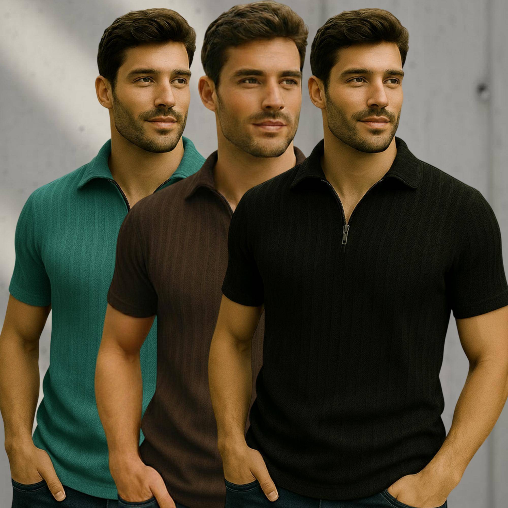 Roadster Solid Men Zip Neck Multicolor T-Shirt
