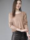 Roadster Solid Round Neck Casual Women Beige Sweater
