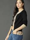 Roadster Solid Round Neck Casual Women Black, Beige Sweater