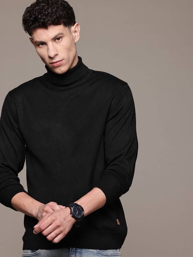 Roadster Solid Turtle Neck Casual Men Black Sweater