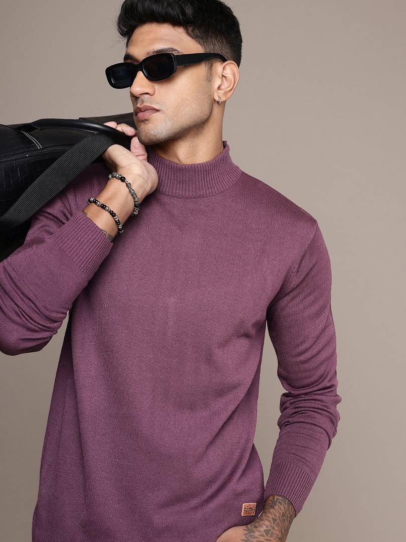 Roadster Solid Turtle Neck Casual Men Purple Sweater