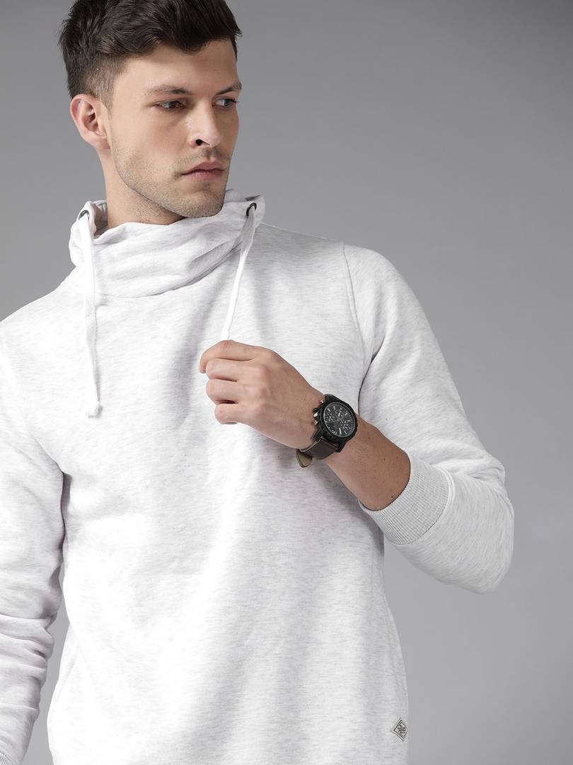 Roadster Solid Turtle Neck Casual Men White Sweater