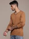 Roadster Solid V Neck Casual Men Brown Sweater