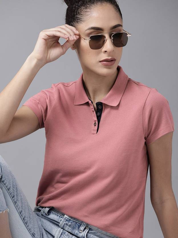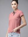 Roadster Solid Women Polo Neck Pink T-Shirt
