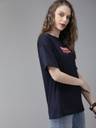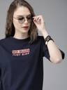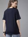 Navy Blue solid T-shirt, has a round neck, printed detailing, and short sleeves. This Roadster navy blue cotton tee will add versatility to your wardrobe. Dress up this navy blue piece with a fitted jacket and dark-wash jeans for a cool and contemporary look.