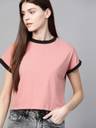Pink solid T-shirt, has a round neck, and short sleeves. This Roadster pink cotton tee will add versatility to your wardrobe. Pair this pink piece with your favourite skinny-fit jeans and leather jacket for a look that will take you from day to night.