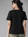 Roadster Solid Women V Neck Black T-Shirt